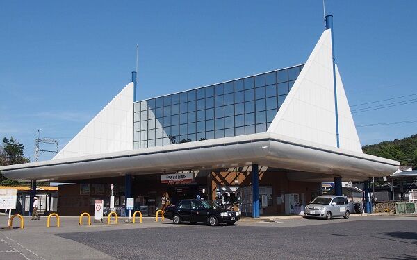 カメラを持ってうろついていると、客待ちのタクシーの運転手が「横から撮ってみな、ヨットの形になってるんだよ」と教えてくれました。言われてみれば確かにそう見えます。