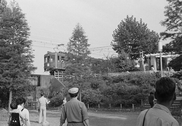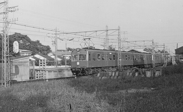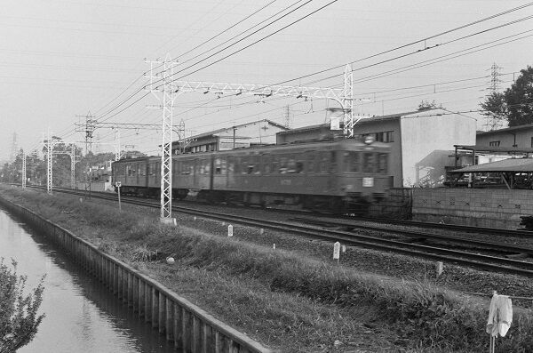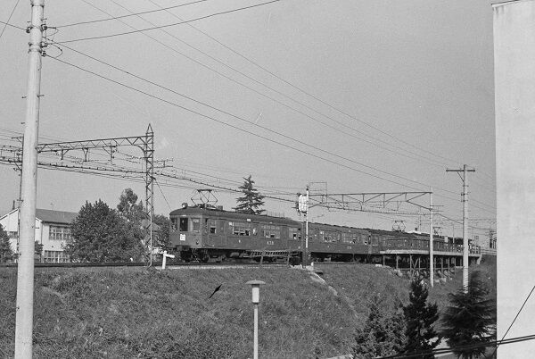 前振りが長くなりましたが、今回の写真は昭和38(1963)年9月22・24日に撮影したもので、大部分は京王帝都電鉄井の頭線です。高校2年で写真部に入っていましたが、我が家に35mmカメラはなく、友人から借りたのはあまり聞いたことがないメーカーの入門クラス。シャッターは最速が1/250秒くらいだったので、たいしてスピードが出ていない井の頭線もブレブレです。