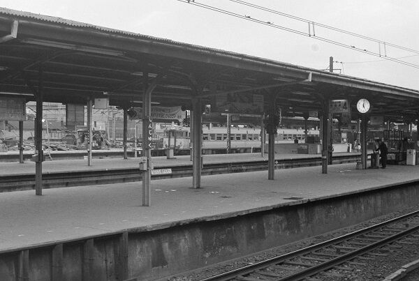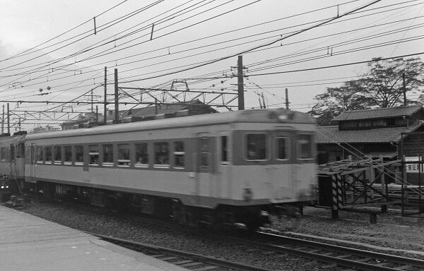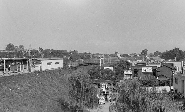 西永福駅で車両はデハ1800形。停車する寸前なのでブレてはいません。まだ缶コーヒーが普及する前だから売店には牛乳の冷蔵ボックスがあるし、左の柱の所にあるのは伝言板でしょう。電話ボックスはクリーム色に屋根が赤だったと思います。