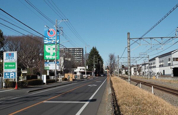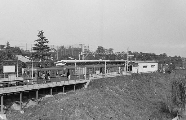 高井戸は現在とは違って相対式のホームでした。この列車は3連のようです。