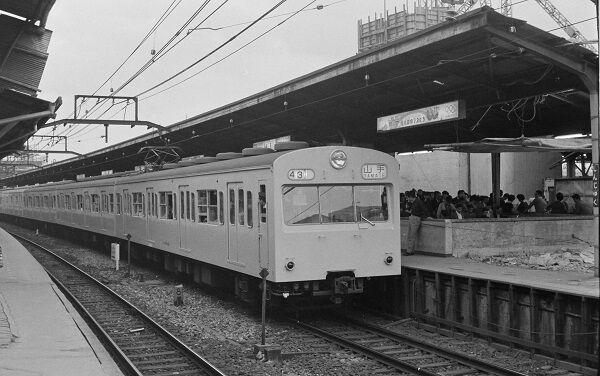 帰宅途中で撮影したのでしょう。新宿に到着する山スカ。バックの二幸は後のアルタ、右の駅ビルはまだ工事中です。