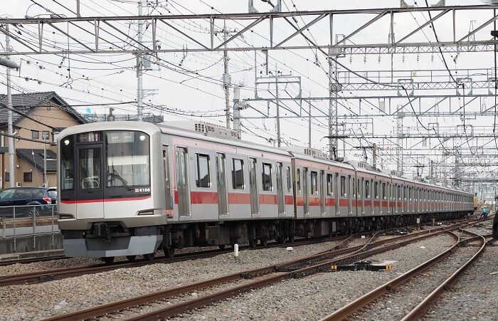 パンタがよく見える所はここだろうと見当をつけたのは大泉学園。島式ホームなので被られる心配はないけど、架線を吊るビームが邪魔しています。ホーム先端なので屋根はないし、ポツポツ降出してきたので場所を変えます。