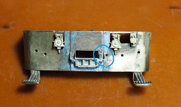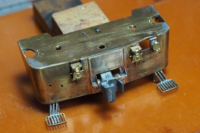 なんとかそこそこの形になりました。三角チャンネルの上の方はハンダが回っていないので、あとから瞬間接着材で補強しておきます。通常は手を触れない所だからこれで大丈夫でしょう。