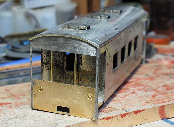 昼間でもそこそこの乗車率なので、なかなか車内が撮れない。真ん中の仕切り扉が横引きになっているのは、運賃箱を置いた時に対応しているのでしょう。運転室はレール方向にも仕切りがあるので、真ん中に立ってもメーター類はほとんど見えません。