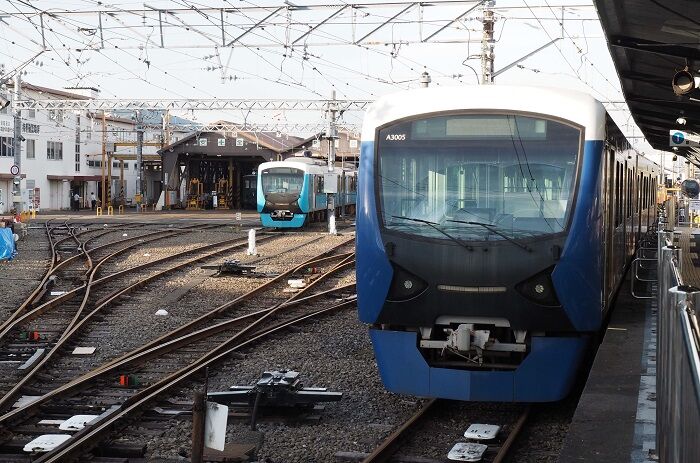2003年5月に撮影。新宿寄りには非常用の渡り線がありました。貨物扱いがあった頃は上り線から海側(画面右側)の貨物側線に入るため、渡り線の向きが逆になっていました。