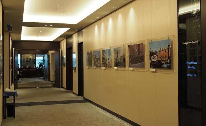 廊下の突当たりはラウンジのようでした。鉄道関係の写真は20数点くらい、画廊ではないのでライティングに制約があり、見る角度によっては画面保護のアクリル板がテカことがあります。
