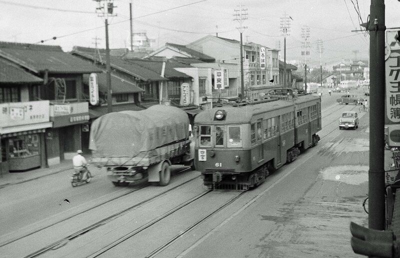 1966(昭和41)年1月8日、この日は伊豆箱根鉄道大雄山線を皮切りに箱根登山鉄道、伊豆急行を1日で撮り歩いていました。箱根登山から伊豆急に向かう途中、小田原で出会ったのが臨時準急の「ながら」。モノクロなのでちょっとわかりにくいですが車両は修学旅行用の159系で、本来の用途がない冬には「ながら」に使用されるのが定番になっていました。