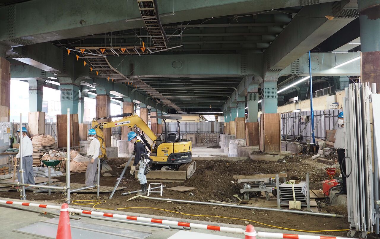 ホームの外側のちょっと不自然な空間は、かつての線路跡なのです。