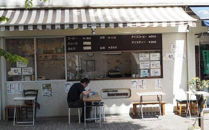 橋の袂のお茶屋。かき氷に惹かれたけど、結構強気の値段だったのでパス。