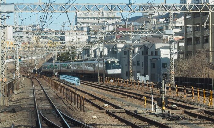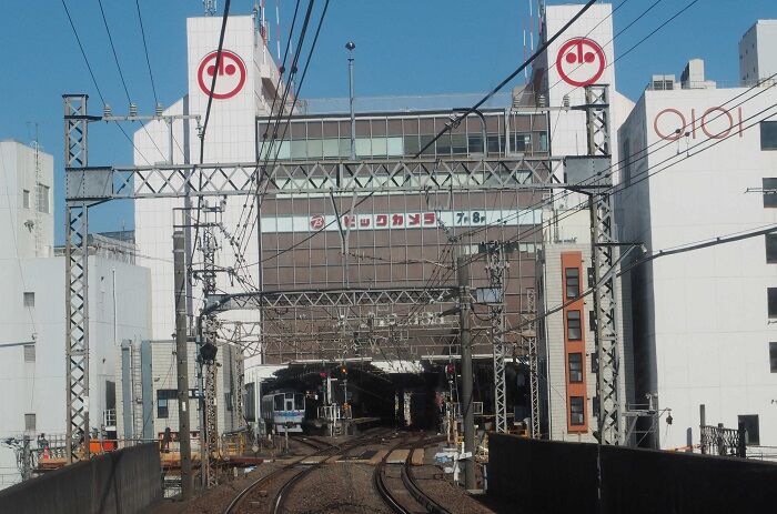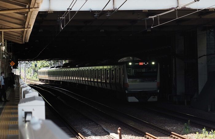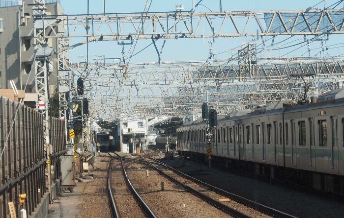 水鏡を狙ったわけではなさそう。このあたりは高架複々線になり、マンションが林立しています。