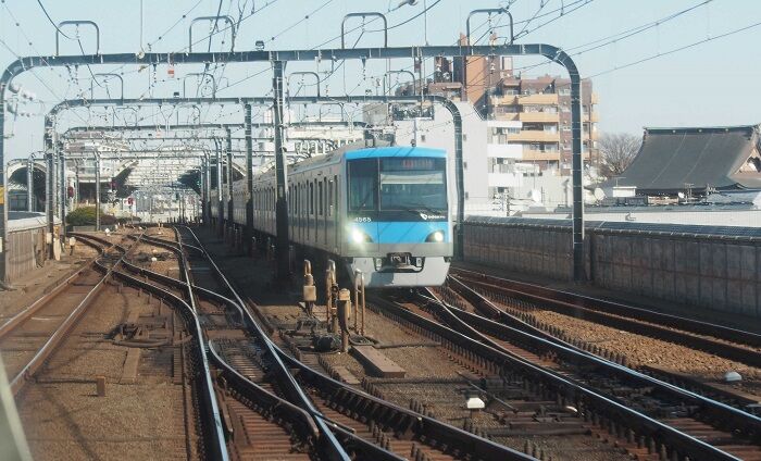 後方に見えている歩道橋から。井の頭線から転用した1710系1711~1714の4連です。甲州街道は拡幅工事が進行しています。