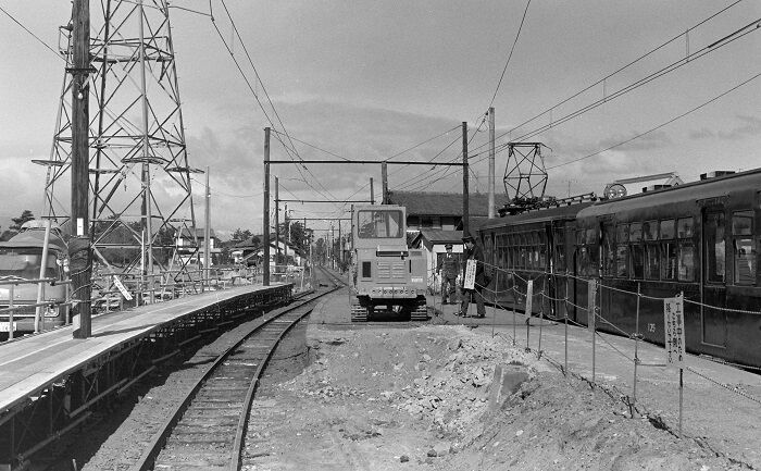 北勢線は過去にもたびたび紹介されていますが、私はこの場所の写真を見た覚えがありません。この時も貨車が止まっているから取敢えず1枚撮ったもので、トラバーサーがあることなどはまったく気付いていませんでした。今ならここだけで数10カットは撮っているだろうけど、まぁ、1枚撮っていただけでもよしとしましょう。