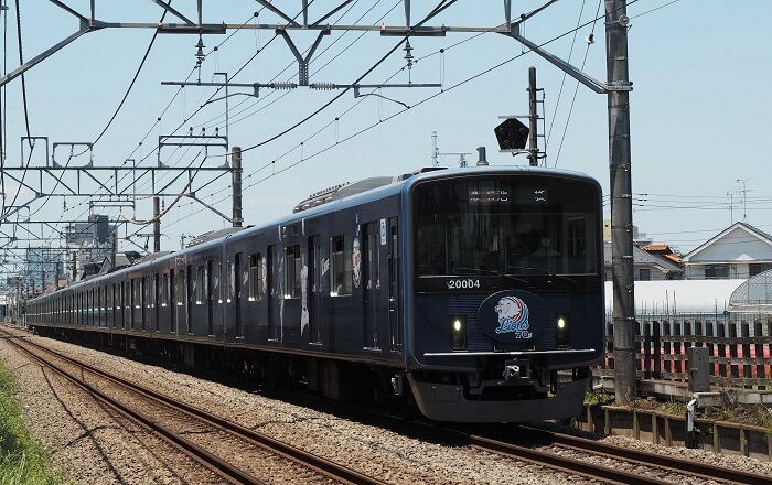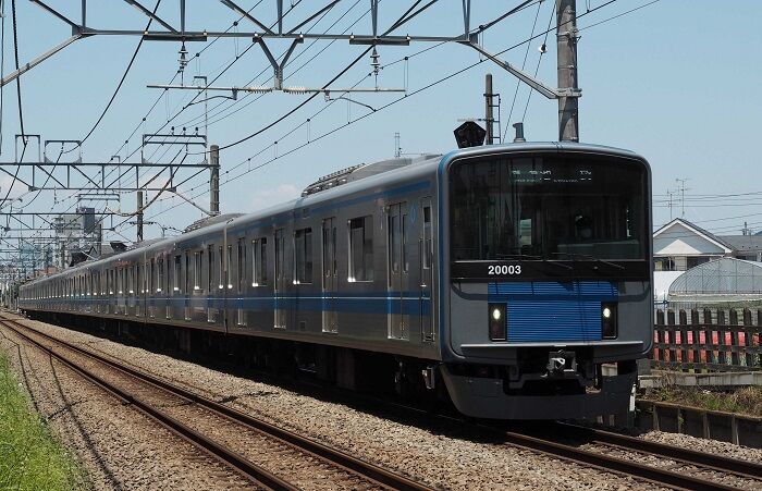 まずはJR乗入れ用の12000系から。塗装されているし側面はビードも継ぎ目も見えないけれど、ステンレス製でメーカーは総合車両製作所。メカ的には乗入れ先のJR東日本E233系と同じで、裾を絞った広幅車体に前面は非貫通、編成も6M4Tの10連です。2019年2月に第1編成が竣工し、6本が在籍しています。